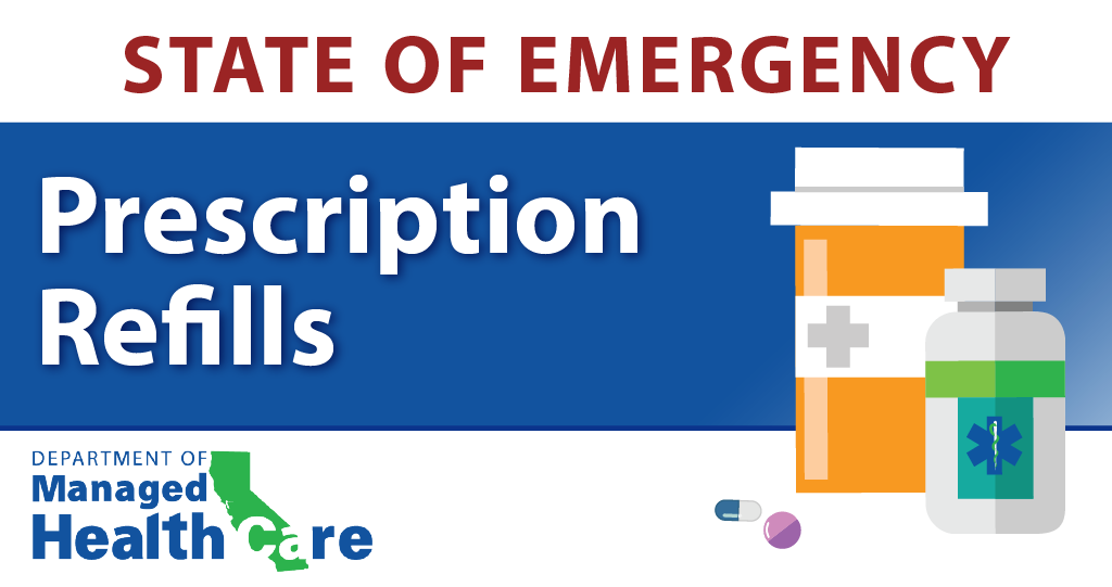 Suggested Messaging: If you’ve been impacted by the #wildfires, the last thing you need to worry about is how to refill your prescriptions. Health plans are required to suspend prescription refill limitations and allow prescription refills at out-of-network pharmacies for health plan members displaced by wildfires. Learn more: https://www.dmhc.ca.gov/Portals/0/Docs/DO/NaturalDisasterFlyer-A.pdf