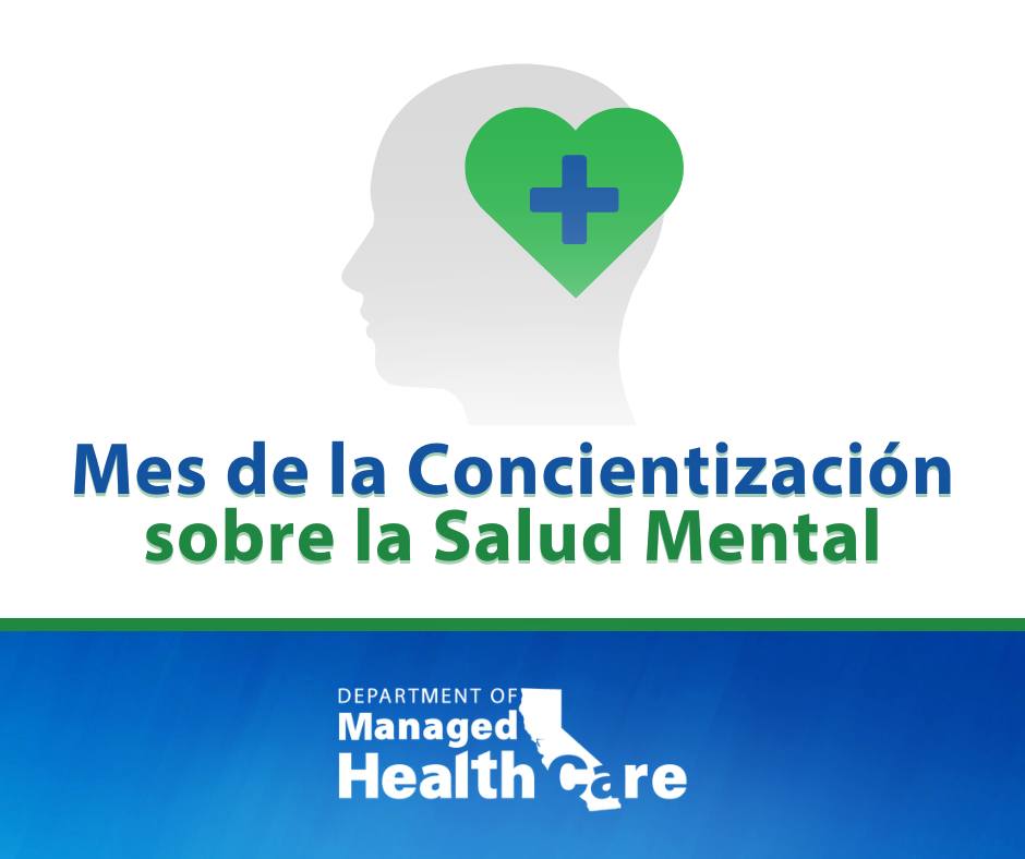 Suggested Messaging: ¡Mayo es el mes de la concientización sobre la salud mental! Una de las principales prioridades del DMHC es garantizar que los miembros del plan de salud puedan acceder a servicios de salud mental cuando los necesiten.